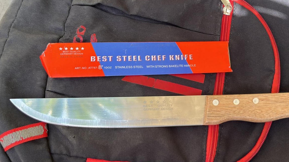 תמונה של הסכין שנתפסה בכליו של החשוד. קרדיט צילום: דוברות המשטרה.