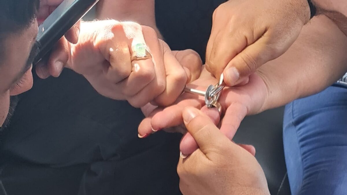 לוחמי תחנת מעלה אדומים מיד החלו בביצוע פעולות זהירות לחילוץ הטבעת מהאצבע הכואבת.