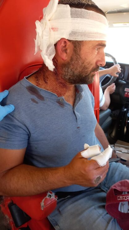 התושב נפצע ודם ניגר מראשו וחשש לשבר בידו, למקום הוזעקו גורמי רפואה והוא טופל במקום.
