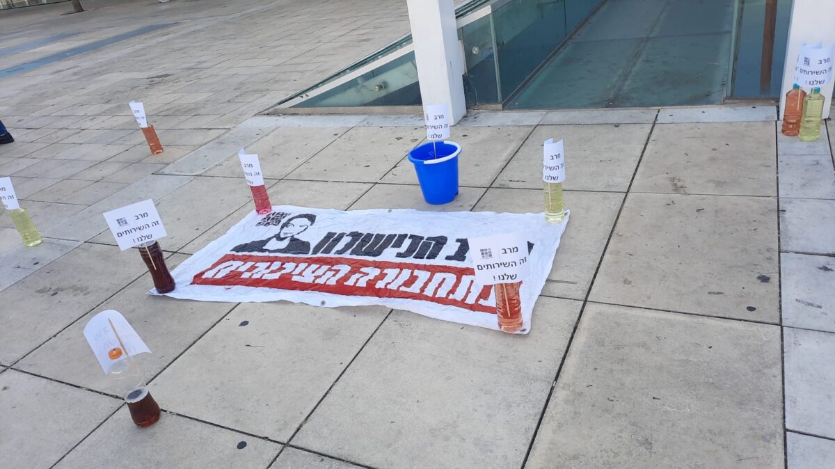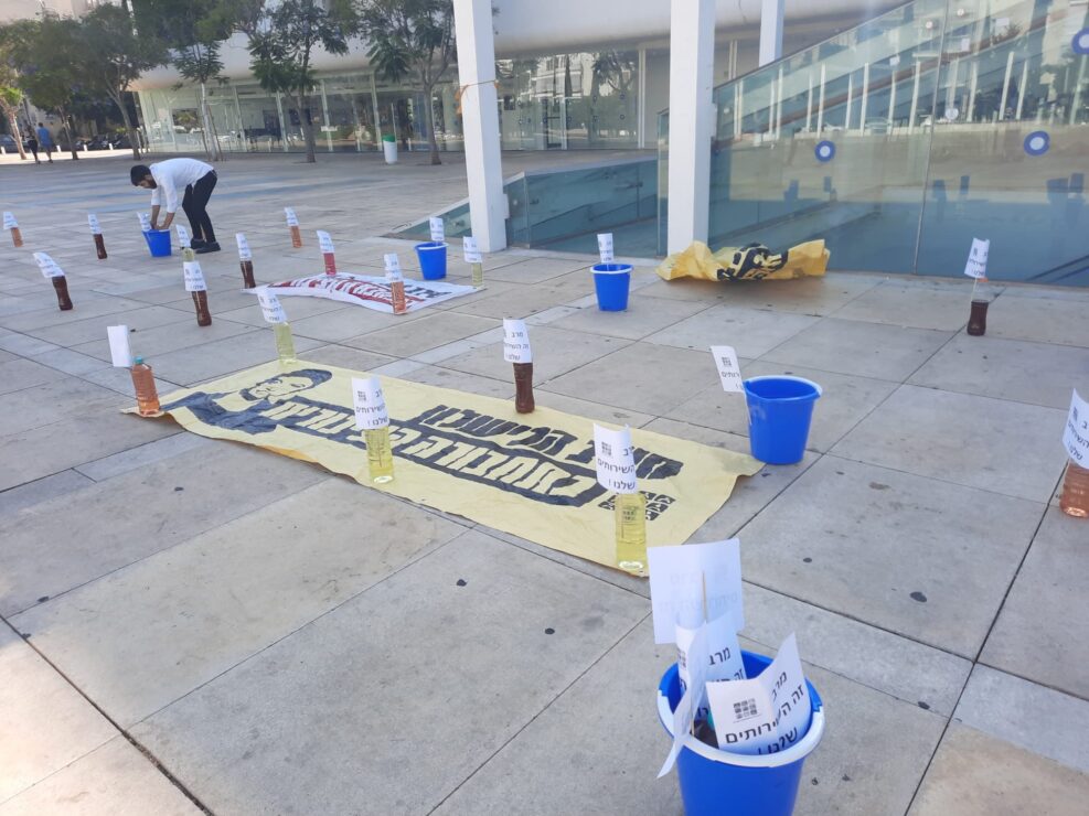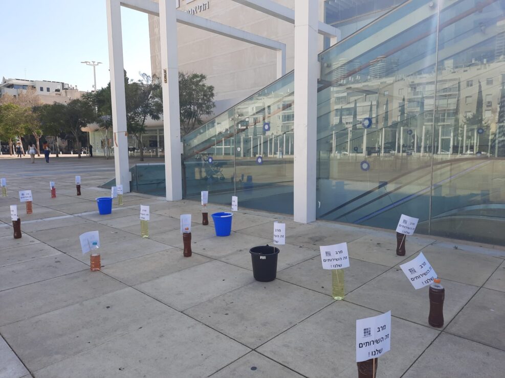 נהגי אוטובוסים הקימו מיצג מחאה של בקבוקי שתן ודליים בכיכר הבימה – וכתבו: "מירב זה השירותים של הנהגים של התחבורה הציבורית. הגיע שתן עד נפש."