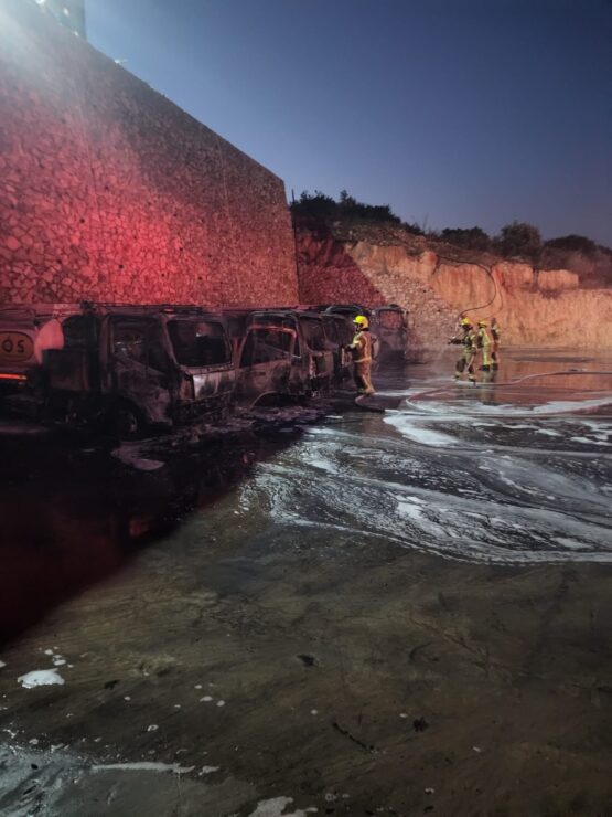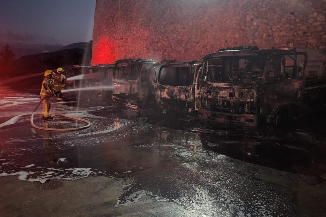 עם הגעת צוותי הכיבוי למקום הבחינו כי מדובר בשש משאיות בוערות בחלק הקדמי שלהן כאשר קיימת סכנה ממשית למיכלי הסולר שמחוברים אליהן.