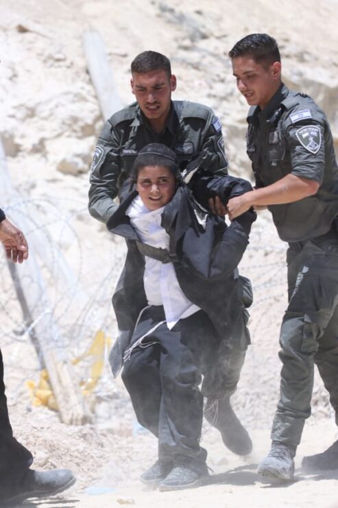 במהלך ההפגנה, פועלים ערבים שעובדים במקום, פינו את המפגינים באלימות, בזמן שהשוטרים עמדו בצד – בטענה שמדובר בשטח פרטי.