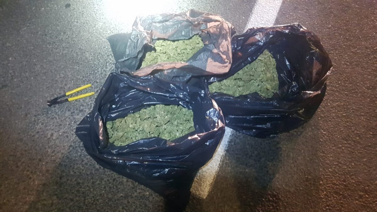 לאחר מעקב קצר השוטרים ביקשו מהנהג החשוד לעצור בצד הדרך, אך הנהג החל בנסיעה פרועה ותוך כדי הושלכו מהרכב 3 שקים שחורים שנמצא בהם חומר החשוד כסם מסוג קנביס במשקל 3 ק"ג לערך.