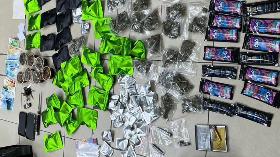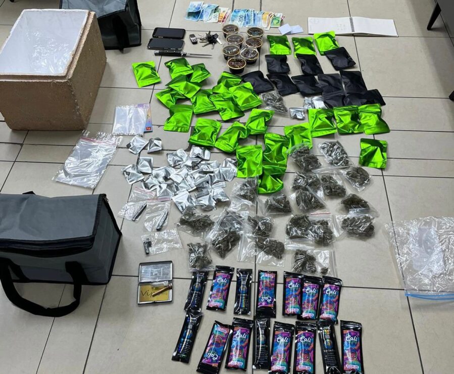 כשניגשו הבלשים לברר את מעשיו של החשוד סמוך לרכבו, זיהו כי נידף ריח חריף ובחיפוש ברכב נתפסו חומרים החשודים כסמים מסוגים שונים. בין היתר נתפסו – מאות גרמים של חומר חשוד כסם מסוג גראס וחשיש וחומר חשוד כסם מסוג קריסטל. בנוסף, נתפס בידי החשוד כסף מזומן בסך אלפי ש"ח, מחברת רישום לקוחות ועוד.