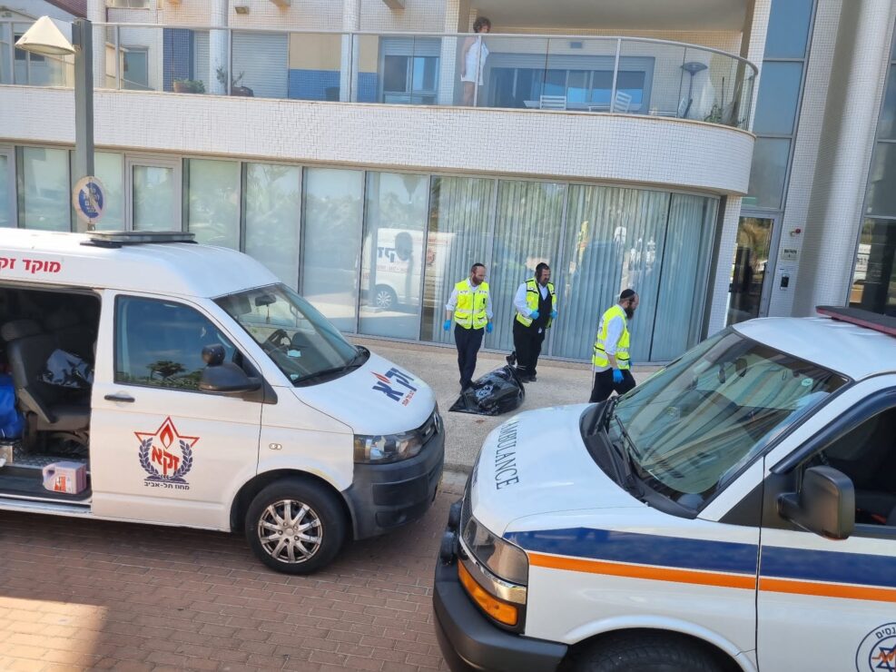 יחיאל גולדמן קמב"ץ זק"א ת"א מספר: "בסביבות השעה 9 בבוקר הוזעקנו לאירוע ברחוב מנחם בגין בת"א, מדובר באדם שנפל אל מותו מגובה רב מאוד של כ- 30 קומות, אנחנו מטפלים בזירה הקשה ובאיסוף הממצאים הרבים, הגופה תועבר למכון המשפטי באבו כביר לצורך זיהוי.