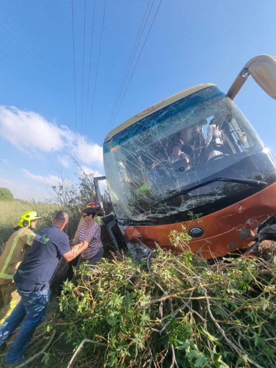 אבי מונק, ומוטי פורייס חובשים במד"א – הצלה פתח תקווה שהיו מהראשונים להגיע למקום סיפרו: כשהגענו למקום הבחנו באוטובוס נמצא בתעלה במדרון בשדה הפתוח לצד הכביש , כלל הנוסעים היו בהכרה בתוך האוטובוס אך נזקקו לחילוץ דרך חלונות האוטובוס. בשלב זה אנחנו בודקים את הנוסעים שסובלים מחבלות ומכות יבשות , ומצבם מוגדר קל.