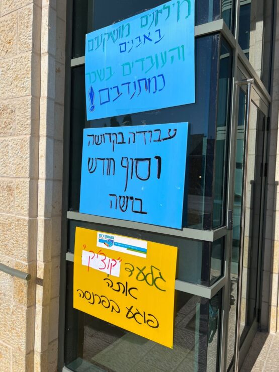יו"ר מרחב ירושלים בהסתדרות, דני בונפיל, מסר: "הם הפכו את העובדים לעבדים. העובדים מקבלים את המשכורות הנמוכות ביותר במשק, ובשנים האחרונות אנו מנסים להגיע להסכם קיבוצי, אך ההנהלה עושה הכל כדי לא לאפשר זאת. לכן, לא הייתה לי ברירה אלא להשבית את המקום לכמה שעות, ולאחר מכן, אם נצטרך, גם לכמה ימים".