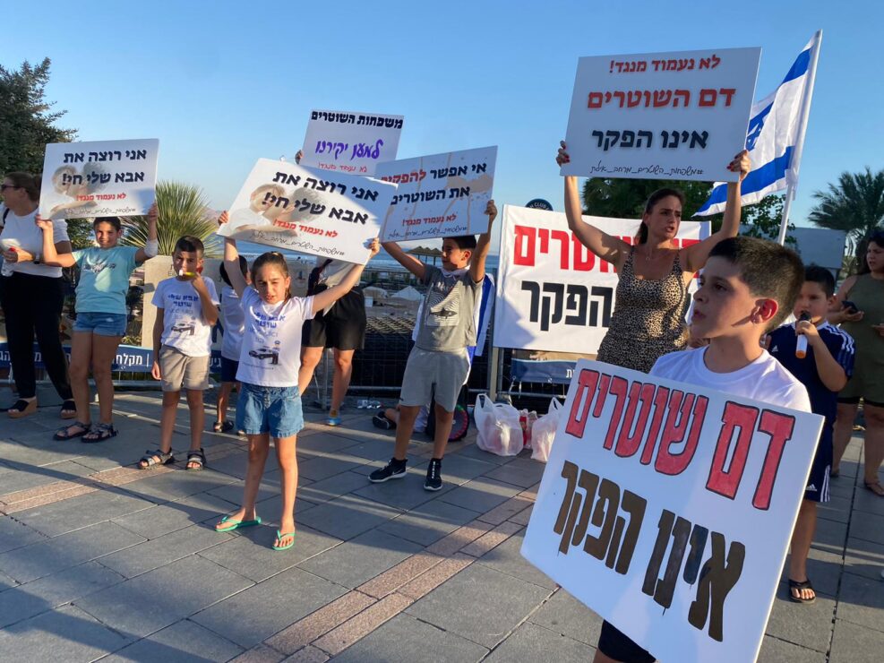 בני משפחות השוטרים של משטרת מרחב אילת הגיעו למפגן תמיכה בטיילת אילת והפגינו לאות הזדהות עם השוטרים.