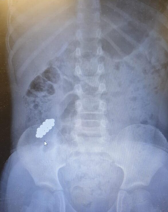 ד"ר אייל זיפמן, מנהל השירות לגסטרואנטרולוגיה ילדים מסביר כי בגלל ההבנה לגבי הנזק שמגנטים עלולים לחולל – והחשש מנקב במעי וזיהום בחלל הבטן, הוחלט לשלוח את הילד באופן מידי לצילום. בצילום נצפו המגנטים במעי הדק במקום שלא ניתן להגיע ללא ניתוח. הוחלט כי נעשה מעקב לבחון את מקומם ובשלב מסוים נמצא כי הם אינם מתקדמים לבד ויש לעשות קולונוסקופיה. המגנטים נמצאו במעי הגס והוצאו בהצלחה".