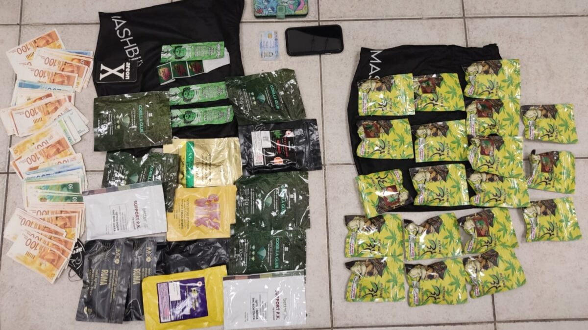 בחיפוש ברכב תפסו השוטרים אלפי ₪ במזומן, חומר החשוד כסם מסוג מריחואנה בשקיות חלוקה וחומר החשוד כשמן קנאביס.