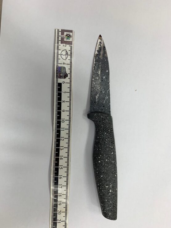 שוטרים שהגיעו למקום, איתרו את החשוד העונה לתיאור ובחיפוש שנערך על גופו נמצאו 2 סכינים שהחזיק למטרה שאינה ברורה.