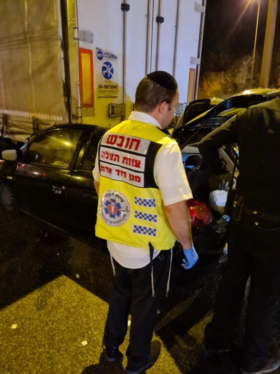 פאראמדיק מד"א דרור עיני וחובש בכיר במד"א בני יוזף, סיפרו: "ראינו רכב פרטי לכוד מתחת לחלקה האחורי של משאית שהייתה בנתיב נסיעה, נהג הרכב גבר כבן 30 היה מחוסר הכרה, וסבל מחבלת ראש קשה, תוך חילוצו מהרכב הענקנו לו טיפול רפואי מציל חיים ופינינו אותו לבית החולים תוך המשך טיפול כשמצבו אנוש."