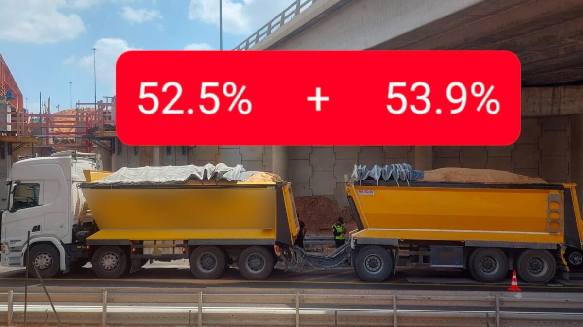 במהלך הפעילות נתפס נהג שעל פי החשד הוביל מטען במשאית במשקל חריג. במהלך הבדיקה נמצא כי משקל בפועל חורג ב 52.5 אחוז מעל המשקל המותר במשאית ובדרר חריגת משקל של 53.9 אחוז מעל המשקל המותר.