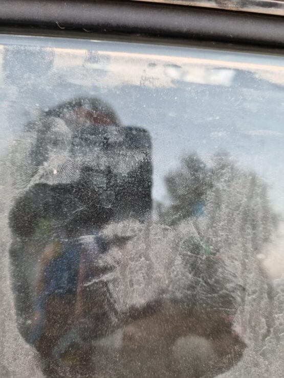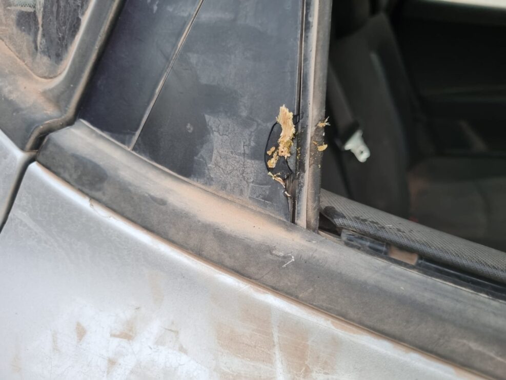 על שמשה אחרת רואים עדיין את טביעת כף היד של אחד הפורעים שניסה לבצע בנו לינץ'