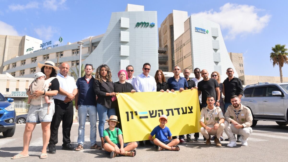 מובילי הצעדה בתמונה מחוץ למיון בבית החולים סורוקה: "טל אוחנה, ראש עירית ירוחם. עו"ד ניסן בן חמו, ראש עירית ערד. שמעון בוקר,סגן ראש עיריית באר שבע. מאג'ד אל כמלאת, סגן ראש עירית רהט ומובילי המחאה."