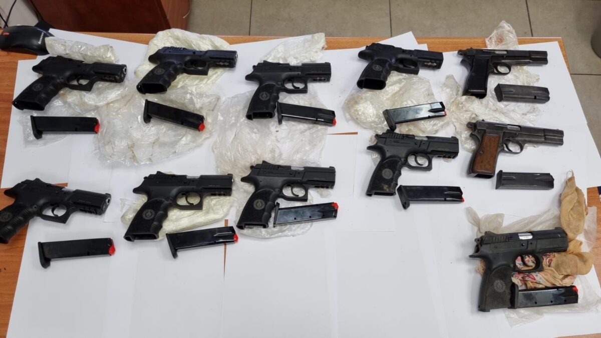 בחיפוש ברכב נתפס תיק ובו 11 אקדחים.