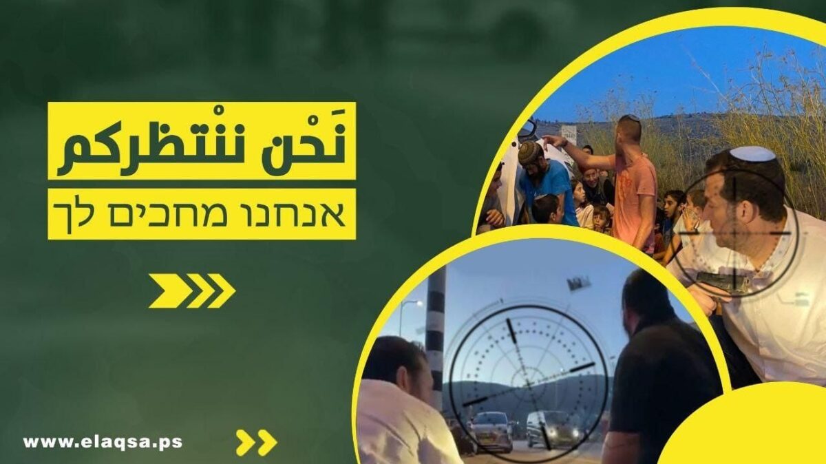 בכרוז מופיעות תמונותיו של דגן מהפיגוע אמש מחזיק את נשקו ומגן על הילדים ועליה ציור של כוונת ירי על ראשו של ראש המועצה.