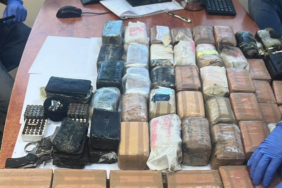 בתוך כך, במהלך חיפוש שערכו השוטרים בבית מגורים בחיפה השוטרים תפסו עשרות ק״ג של חומר החשוד כסם מסוג חשיש וכן אקדח טופי וכדורים.
