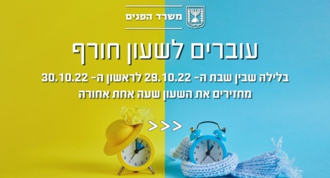 שעון הקיץ תשפ"ג – 2022 מסתיים בסוף הלילה הקרוב (מוצאי שבת), בין התאריכים, ד' חשון תשפ"ג 29.10.2022 ליום ראשון, ה' חשון תשפ"ג, 30.10.2022.
