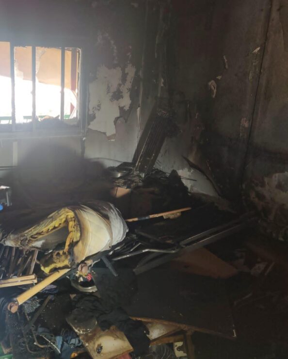 חובשים ופראמדיקים של מד"א דיווחו על אישה כבת 80 עם כוויות ושאיפת עשן ללא סימני חיים וקבעו את מותה.