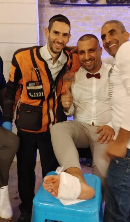 חובשים של איחוד הצלה העניקו סיוע רפואי ראשוני לחתן שנחתך ברגלו בעת ששבר את הכוס תחת החופה באולם אירועים 'לה פלומה' בפתח תקווה.