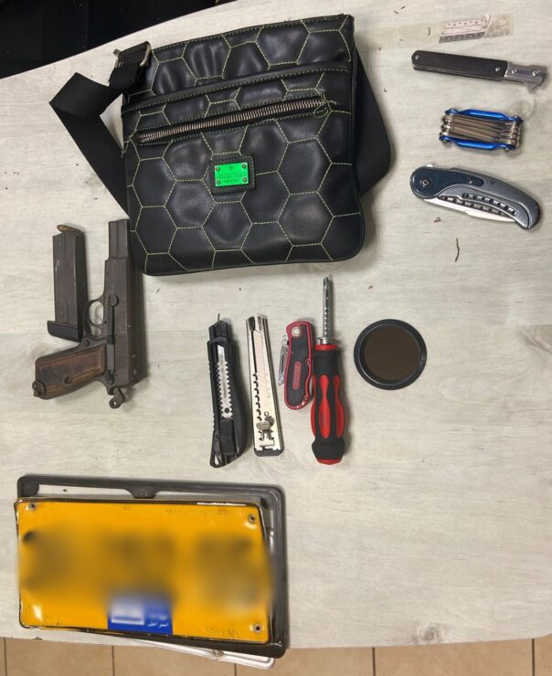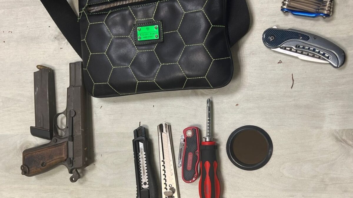 בחיפוש שערכו השוטרים ברכבם, נתפסו אקדח טעון, סכינים, קורקינטים חשמליים החשודים כגנובים וכן לוחיות הרכב שאינן תואמות לסוג הרכב.