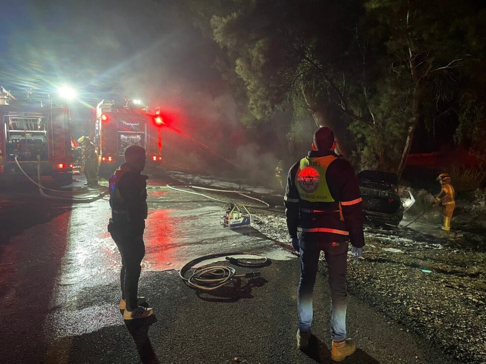 אסון קשה בדרום: נהג רכב נהרג לאחר שסטה עם רכבו לתעלה בכביש 4 סמוך למבקיעים, ולאחר מכן עלה באש.