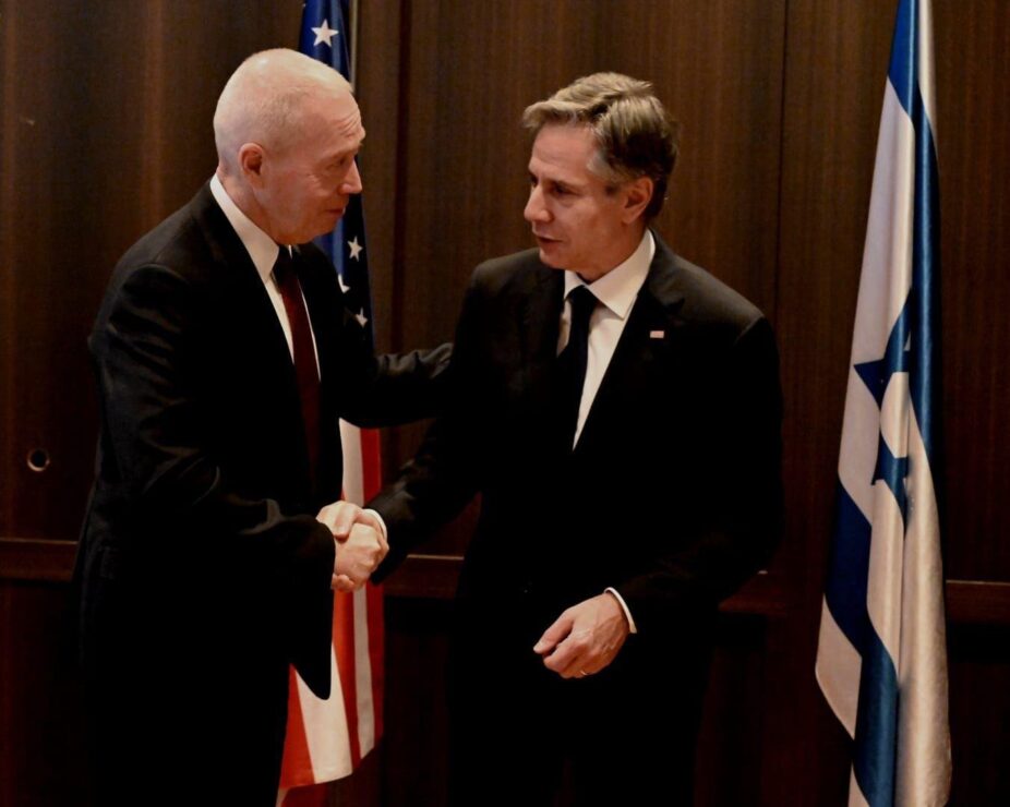 שר הביטחון יואב גלנט למזכיר המדינה האמריקני, אנתוני בלינקן: "ביקורך בישראל מגיע בזמן קריטי, ומעביר מסר ברור ליריבנו ושותפנו באזור: ארה"ב וישראל מאוחדות מול האיום האיראני ומול כל מי שמנסה לערער את היציבות באזור״