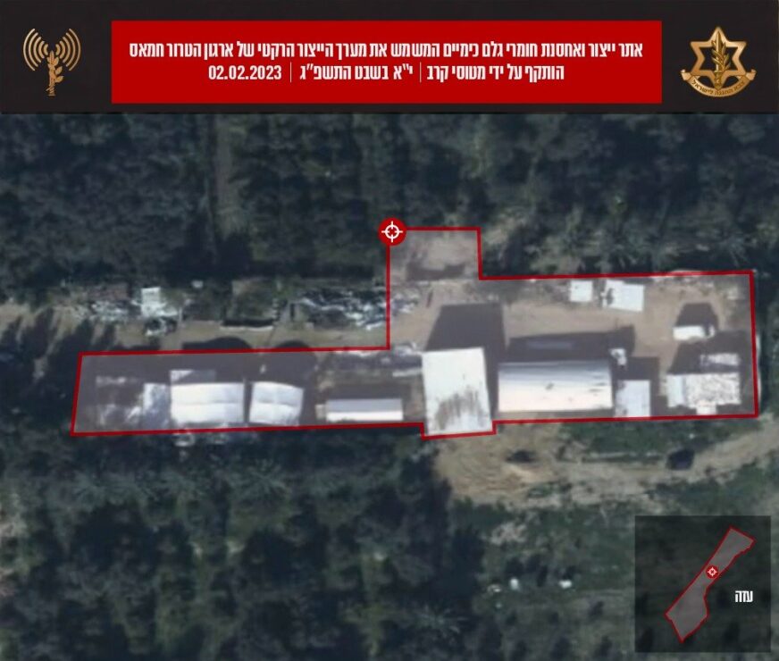 מטוסי קרב תקפו הלילה (ה׳) אתר ייצור ואחסנת חומרי גלם כימיים המשמש את מערך הייצור הרקטי של ארגון הטרור חמאס ואתר לייצור אמצעי לחימה, הממוקמים שניהם במרכז רצועת עזה.