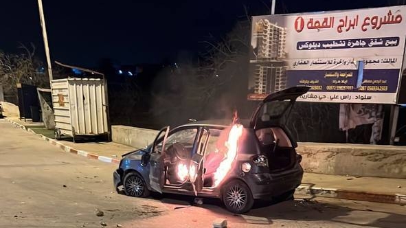 העימותים בין הערבים לכוחותינו כשברקע הרכב נשרף.