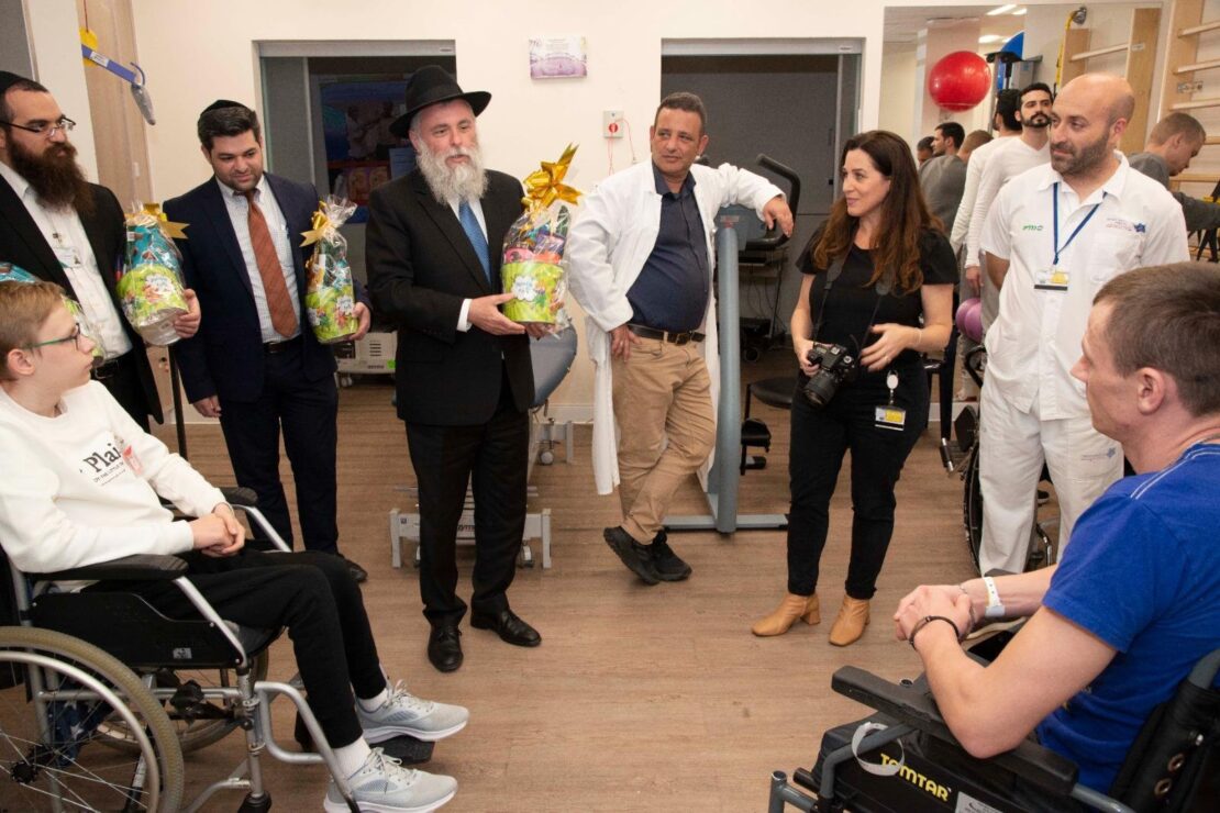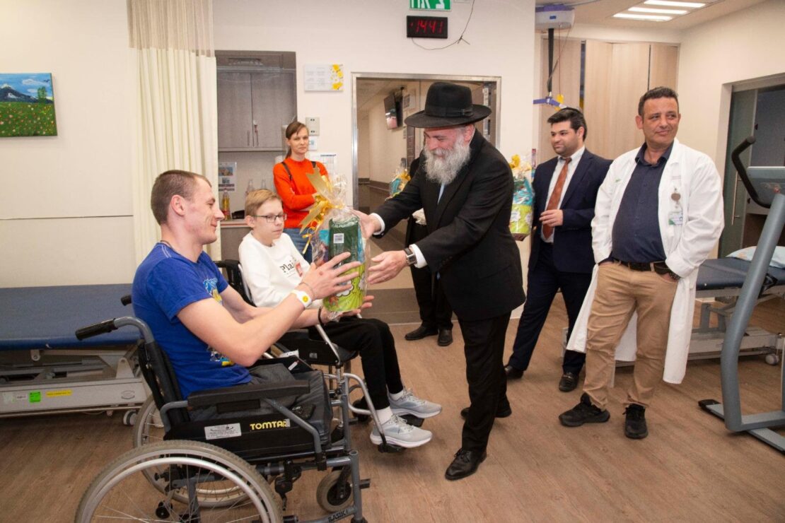 את החיילים המאושפזים, פגש הרב בטיפול במכון הפיזיותרפיה. החיילים התרגשו לפגוש את הרב ולשמוע על הנעשה בארצם. הרב מרקוביץ, העניק לכל חייל מארז משלוח מנות פורימי והסביר לחיילים על מהות חג הפורים ומנהג משלוח המנות שנועד לשמח אחד את השני. החיילים סיפרו לרב על הטיפול המסור שהם מקבלים במרכז הרפואי וביקשו למסור חיזוקים לבני משפחותיהם וחבריהם שנותרו באוקראינה.