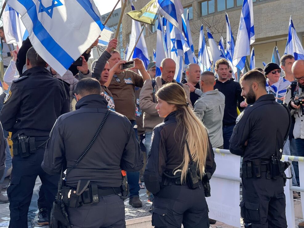 מחוץ למבנה מתקיימת בשעה זו מחאה והמשטרה פועלת לשמירת הסדר במקום.