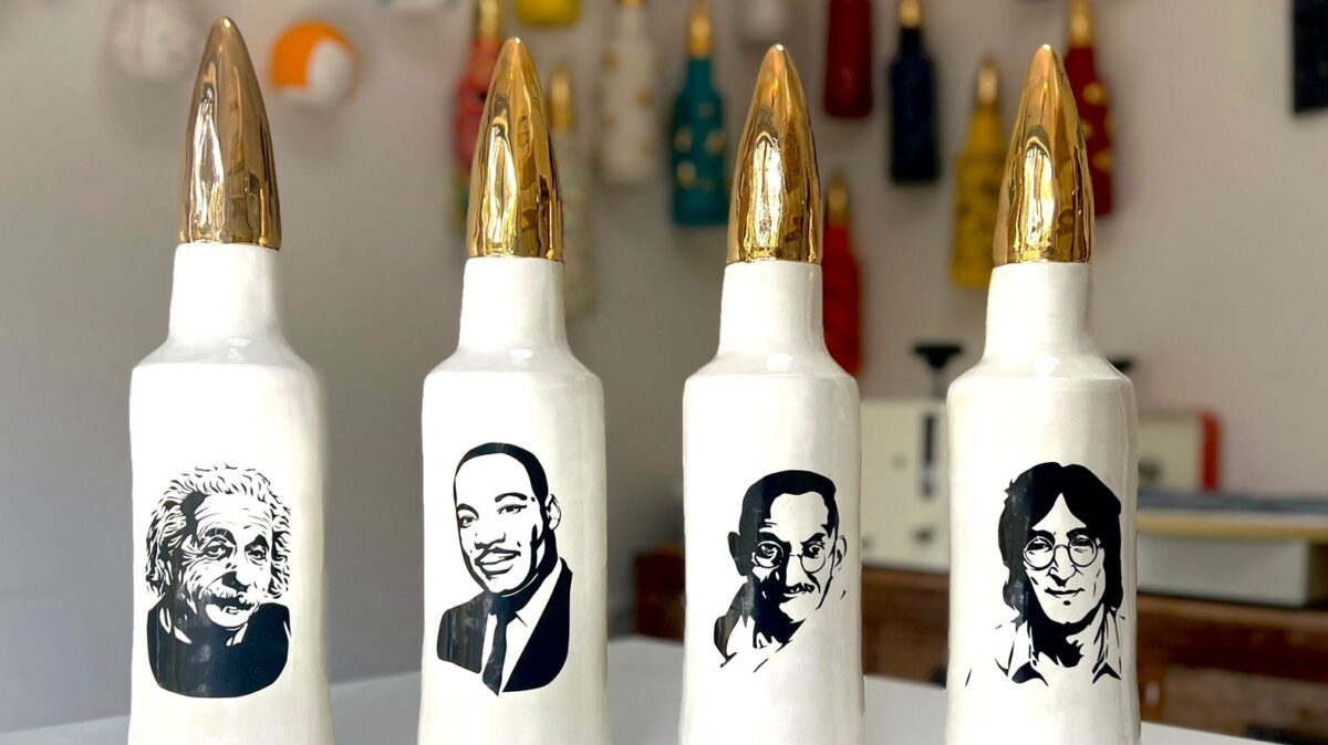 על האומנית: יעל ינאי אמנית קרמיקה בת 52 מתל אביב, אמא ל 4 בנים שחונכו לנתינה ולחמלה ולשרות למען המדינה. המפגש של יעל עם גיוסו של בנה הבכור לשרות צבאי משמעותי, בשילוב עם המצב החברתי במדינה של נפרדות וקיטוב הוליד מתוכה את הפרוייקט: קול קורא לאי אלימות ואחדות באמצעות היצירה שלה.