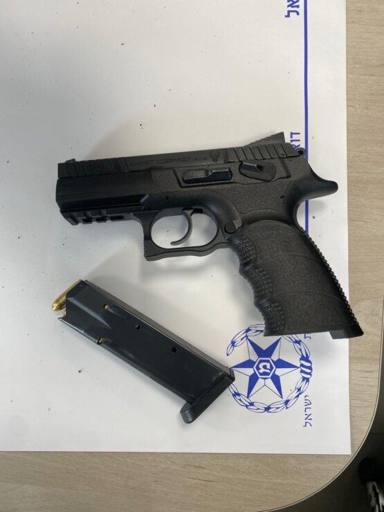 במהלך החיפוש נתפסו ע"י השוטרים אקדח ושתי מחסניות אשר הוסלקו בבית.
