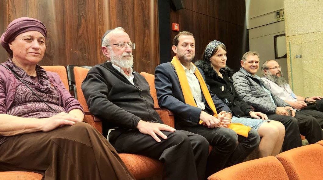 ראש מועצת שומרון יוסי דגן ורעייתו, מקימי חומש תחילה בני גל ובועז העצני והוריו של יהודה דימנטמן הי"ד ממתינים לתוצאות ההצבעה. קרדיט: מועצה אזורית שומרון.