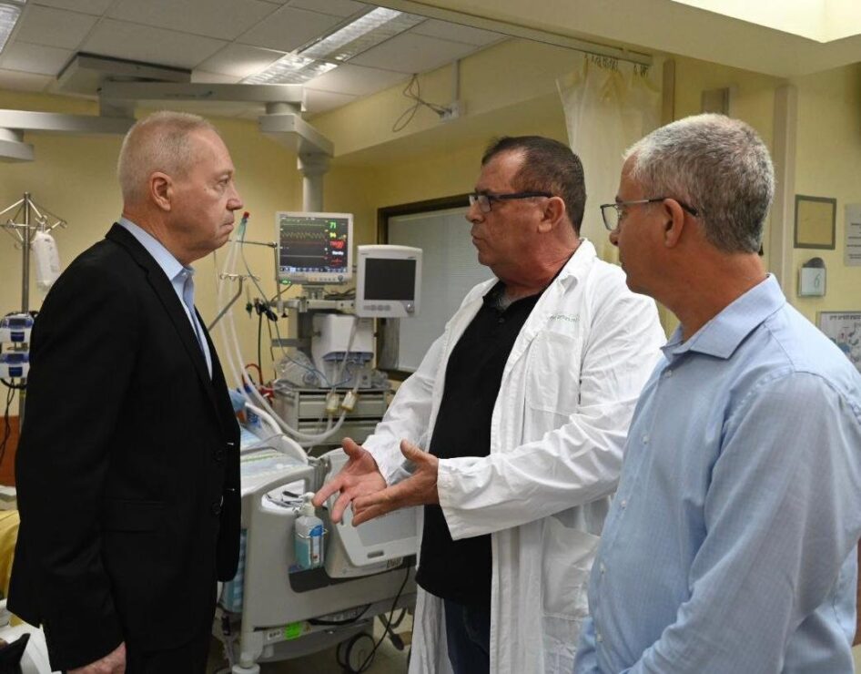 שר הביטחון התקבל בביקור על ידי מנהל בית החולים ד״ר ערן רוטמן, מנהל המערך לניתוחי לב וחזה פרופסור דן ערבות ומפקד חטיבת כפיר אלוף-משנה שרון אלטיט.