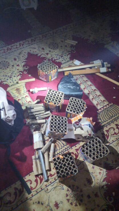 תיעוד מההתפרעות האלימה שהייתה הלילה במסגד ומירי הזיקוקין בכינון ישיר לעבר השוטרים באופן מסכן חיים. קרדיט צילום: דוברות המשטרה.