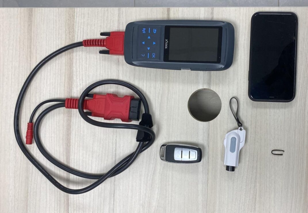 תמונת הרכב וכלי הפריצה שנתפסו על ידי השוטרים. קרדיט צילום: דוברות המשטרה.