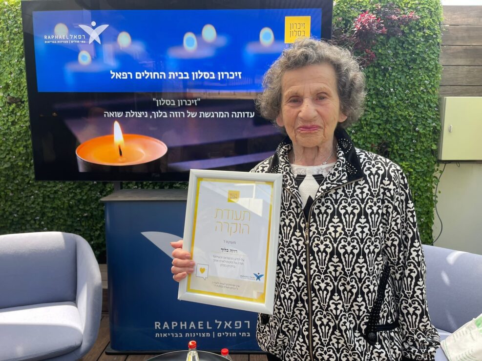 אתמול (17.04), ערב יום הזיכרון לשואה ולגבורה מסרה ניצולת השואה רוזה בלוך את עדותה במסגרת מפגש זיכרון בסלון שהתקיים על גג בי״ח ׳רפאל׳.