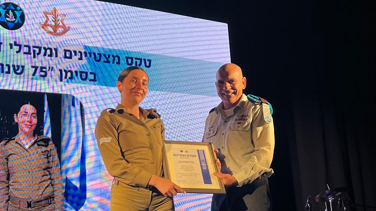 בטקס מצטייני רמ"ט אכ"א, תת-אלוף יורם כנפו. בין כלל המצטיינים נבחרה רב"ט עמית בכר מהרצליה שמשרת כמש"קית מטה בענף איתור נעדרים.