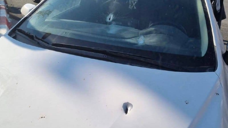 פגיעות הירי ברכב. ראש מועצת שומרון עם הפצוע בפיגוע. קרדיט: סרגיי קמשב.