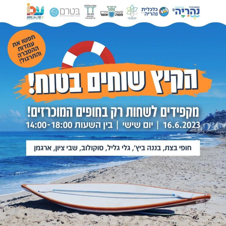 אין כמו בילוי בים בימי הקיץ החמים. לצערנו, מדי שנה טובעים בישראל ילדים, בני נוער ומבוגרים, כאשר חלקם מסתיימים במוות. מרבית מקרי התמותה מתרחשים כאשר אין בחוף הים שירותי הצלה פעילים. ארגון בטרם, המרכז הרפואי לגליל, עיריית נהריה, עיריית עכו ומועצה אזורית מטה אשר החליטו לפעול יחד במטרה למנוע את האסון הבא. ביום שישי הקרוב (16.6.2023) צפוי להתקיים אירוע חופים להעלאת מודעות לבילוי בטוח בים. במהלך היום, בין השעות 14:00-18:00, יוצבו עמדות הסברה ותרגול בשישה חופים לאורך הגליל המערבי: חופי בצת, בננה ביץ', גלי גליל, סוקולוב, שבי ציון וארגמן. בכל עמדה ידריכו צוותי הטראומה של המרכז הרפואי לגליל את המתרחצים בנושא עזרה ראשונה והחייאה במקרה של טביעה. לצד הצוותים הרפואיים יפעילו את העמדות בני הנוער ומלגאים של הרשויות שיחלקו חומרי הסברה, צמידים, כדורי ים ועוד. בעמדות המתרחצים יוכלו לקבל מידע וכללים לשמירה על הבטיחות בחופים ומניעת טביעות.