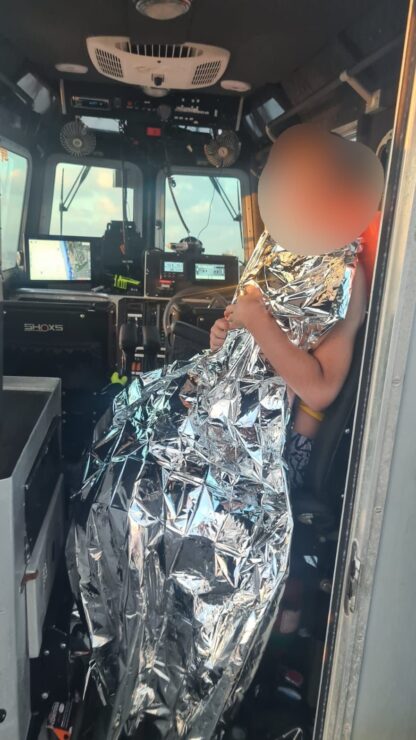 הילד נבדק על ידי חובש היחידה שהיה על הספינה המשטרתית, ונמצא סובל מהיפותרמיה קלה, והוא נעטף בשמיכות מילוט לחימום.