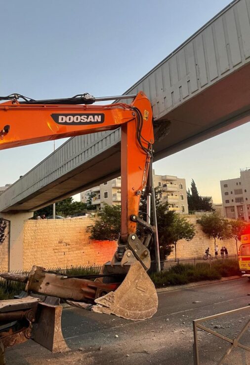 לפני זמן קצר התקבל במשטרה דיווח על מחפר (באגר) שפגע בגשר המיועד להולכי רגל על ציר – 20 סמוך לפסגת זאב בירושלים, זאת ככל הנראה בעקבות כף הבאגר שהייתה מורמת.