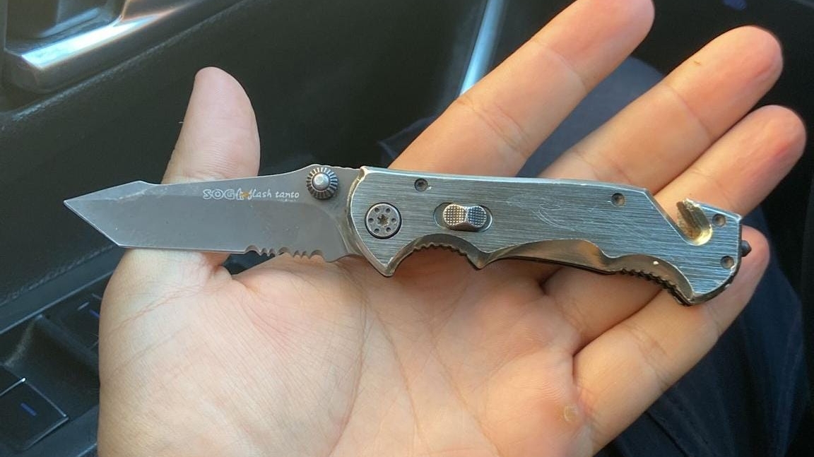 בחיפוש שערכו השוטרים, נתפסה סכין מוסלקת בבגדיו של החשוד.