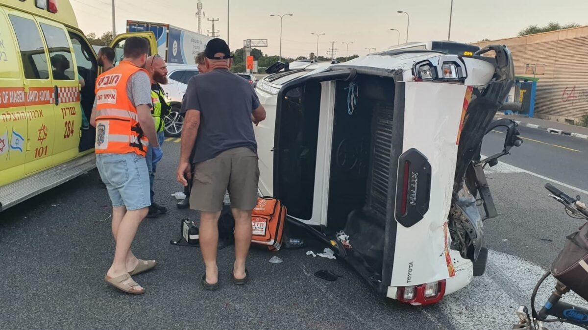 נחשון רשף חובש איחוד הצלה מסר: "מדובר בתאונה עם מעורבות שני כלי רכב – אחד הרכבים התהפך על צדו. הענקנו סיוע ראשוני בזירת התאונה לנהג רכב כבן 20 שנפצע באורח בינוני, ולאשה כבת 60 ולילד כבן 12 שרכבם התהפך – מצבם מוגדר קל".