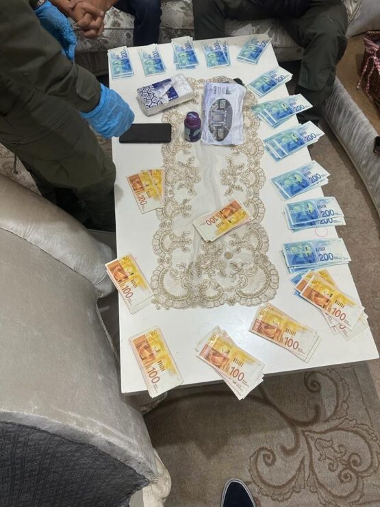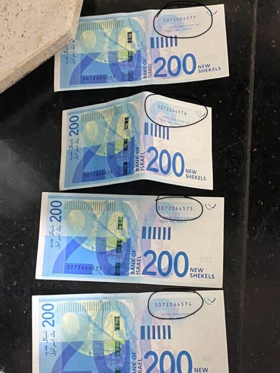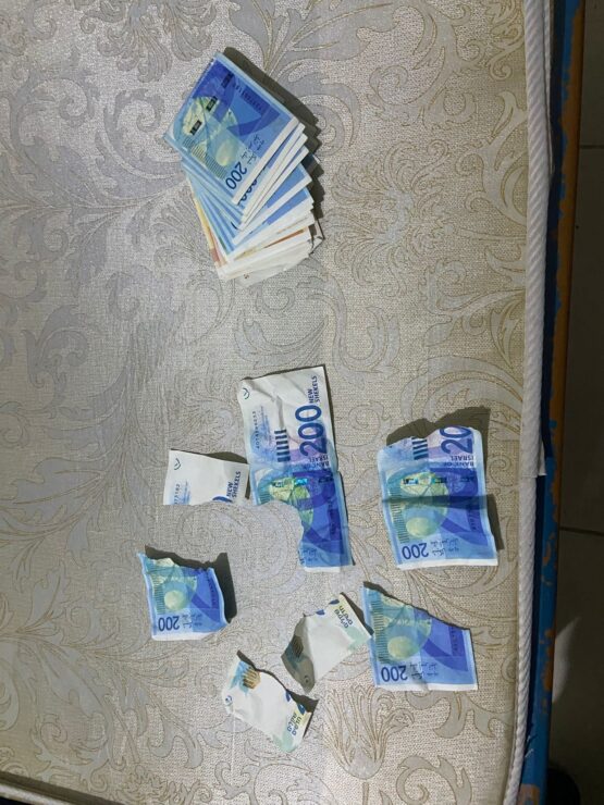 במהלך החיפושים הבוקר נתפסו עשרות אלפי ₪ במזומן החשודים כשטרות מזויפים וכן מסמכים רבים.