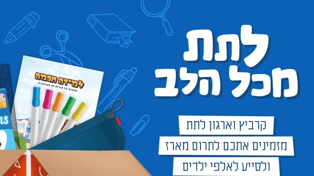 מבצע "לתת תיק" יאפשר לכ-3,000 ילדים בכיתות א'-ב' ול-2,000 ילדים בכיתות ג' ומעלה, בכלל המגזרים, להתחיל את השנה עם ציוד איכותי , כמו כל הילדים.