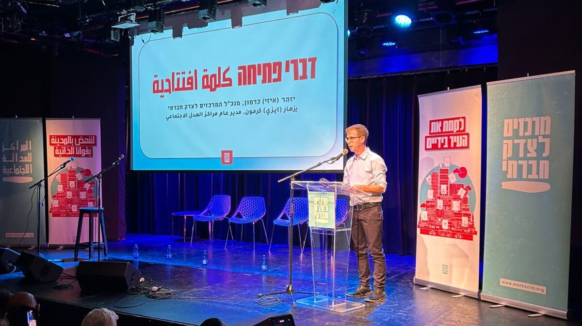 הדוברים באירוע: ח"כ יאיר לפיד, יו"ר האופוזציה, יזהר כרמון, מנכ"ל המרכזים לצדק חברתי, סיגל מורן, מנכ"לית משרד הרווחה והביטחון החברתי לשעבר, אימן סייף, מייסד הרשות לפיתוח כלכלי של המגזר הערבי, מרדכי כהן, מנכ"ל משרד הפנים לשעבר ועמית בכיר במכון למחשבה ישראלית ופעילי ופעילות המרכזים לצדק חברתי.
