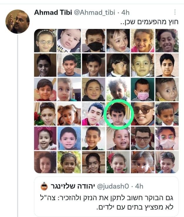 חבר הכנסת אחמד טיבי מחד"ש-תע"ל עורר סערה לאחר שפרסם תמונה שכללה תמונות של 36 ילדים ממשפחות מחבלים שנהרגו במהלך מבצע שומר החומות. רק מה שהחבר כנסת לא ידע, שבין הילדים נמצא גם תמונה של עידו אביגל ז"ל שנרצח מירי רקטה של חמאס לעבר ביתו בשדרות.